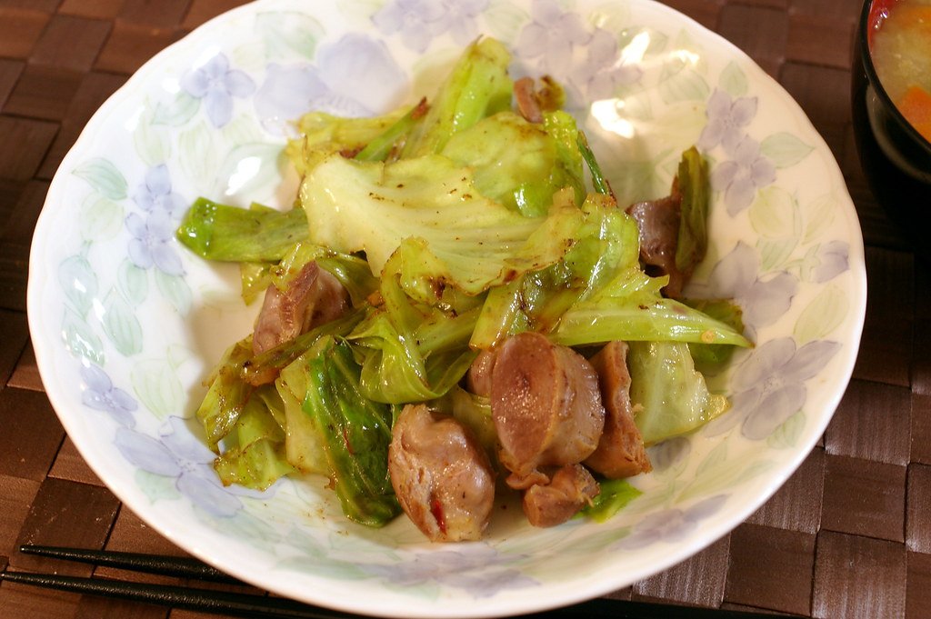 Stir-fried cabbage and chicken gizzard