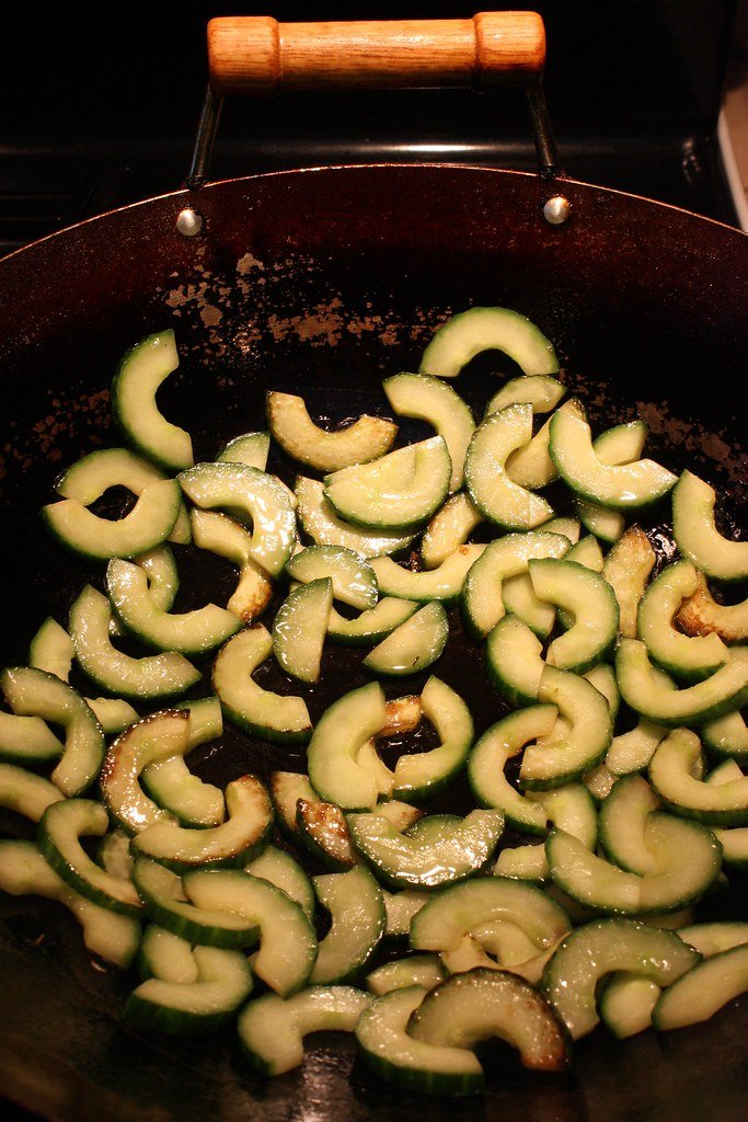 - Add the cucumber slices to the pan and stir-fry for about 3-4 minutes until they start to soften.