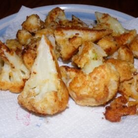 - Remove the fried cauliflower with a slotted spoon and place them on a paper towel-lined plate to drain excess oil.