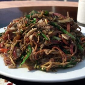 Sliced Banana Flower and Chive stir-fry