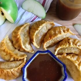 Deep Fried Apple Dumplings with Miso Caramel Dipping Sauce