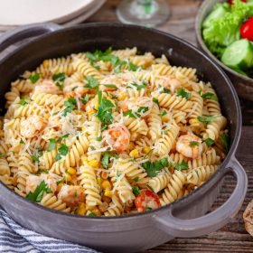 - Add the rotini, lemon juice, parmesan and half the parsley to the skillet. Toss gently to mix. Taste and adjust seasoning if necessary. Serve with fresh crusty bread and a nice garden salad.