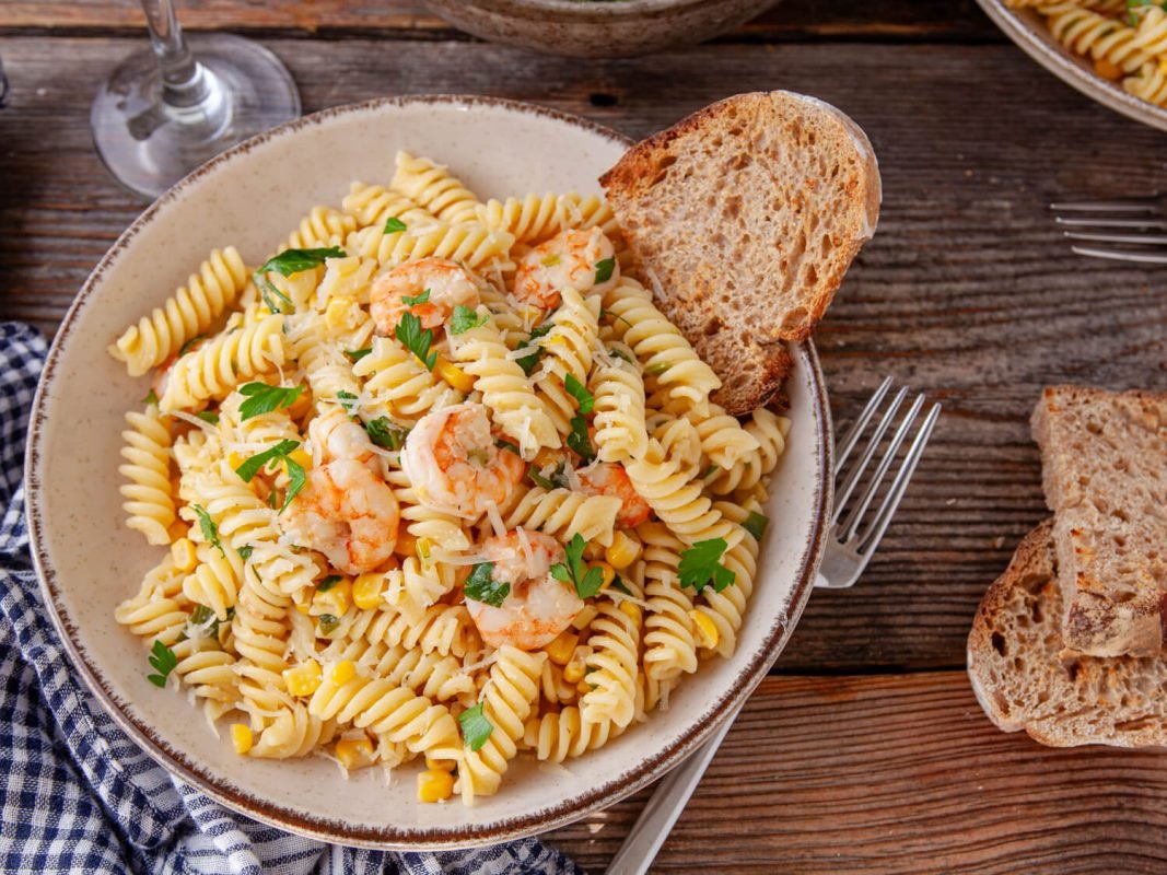 - Bring a large pot of generously salted water to a boil. Prepare rotini al dente according to package instructions. Drain and keep warm.