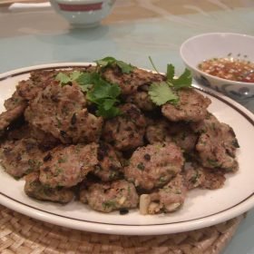 - In a large mixing bowl, combine the ground pork, garlic, soy sauce, fish sauce, oyster sauce, brown sugar, white pepper, cilantro, green onions, and bread crumbs. Mix well until all ingredients are evenly incorporated.