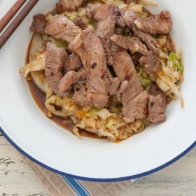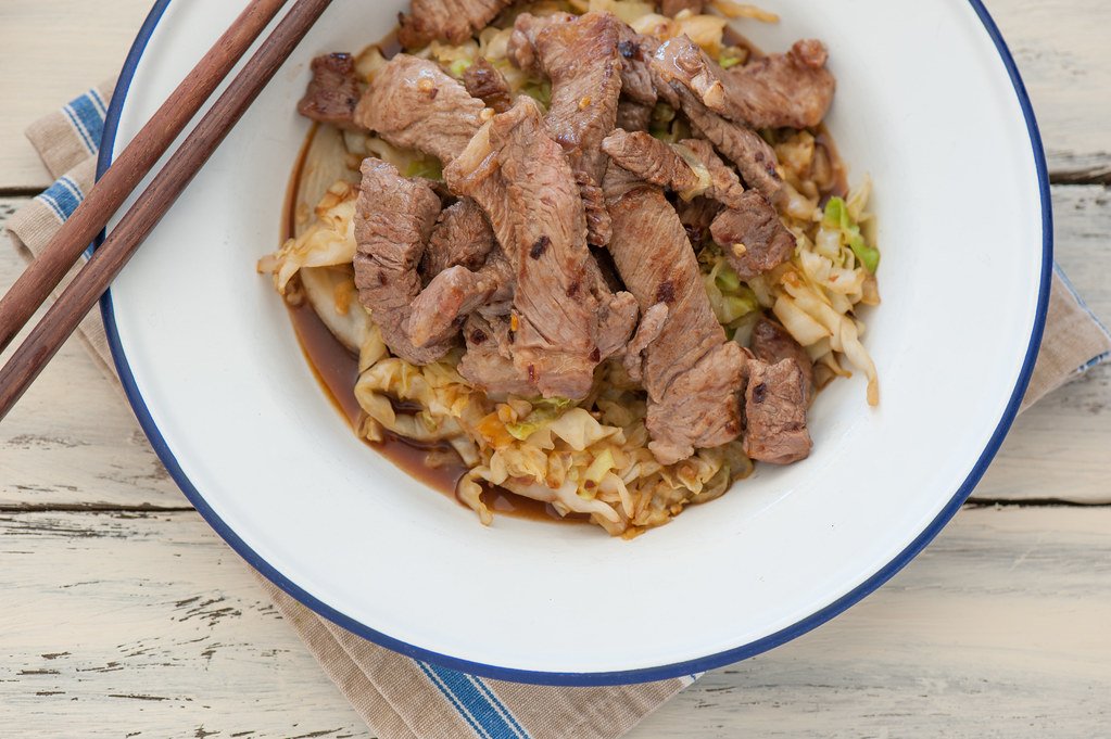 - Return the cooked beef to the pan and mix well with the cabbage.