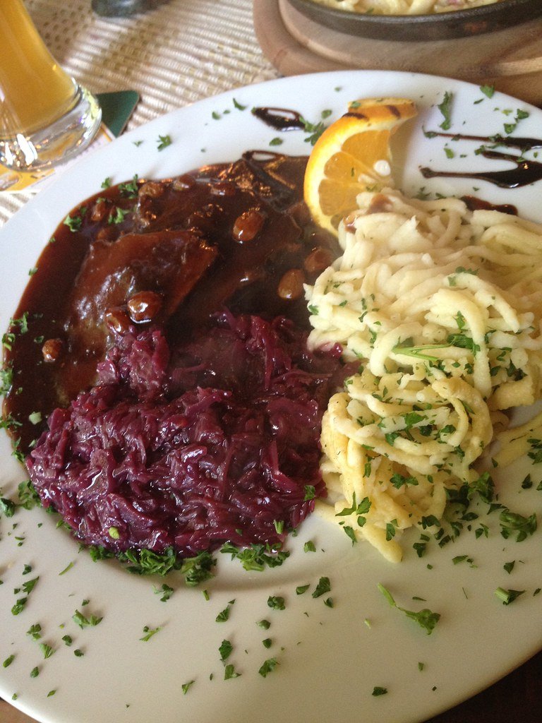 - Serve the Sauerbraten slices with the gravy on top, accompanied by traditional sides like potato dumplings, red cabbage, or mashed potatoes.