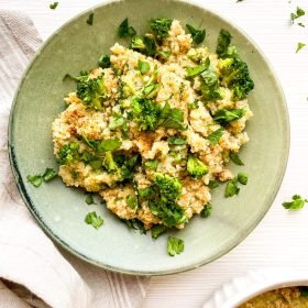 Broccoli and Cheddar Quinoa Gratin