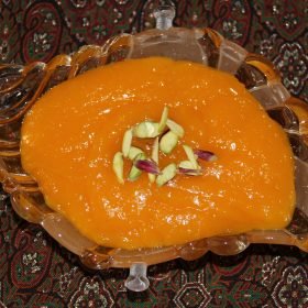 - Transfer the Halva zarde to serving bowls or a large dish. Let it cool to room temperature, then refrigerate for at least 2 hours before serving.