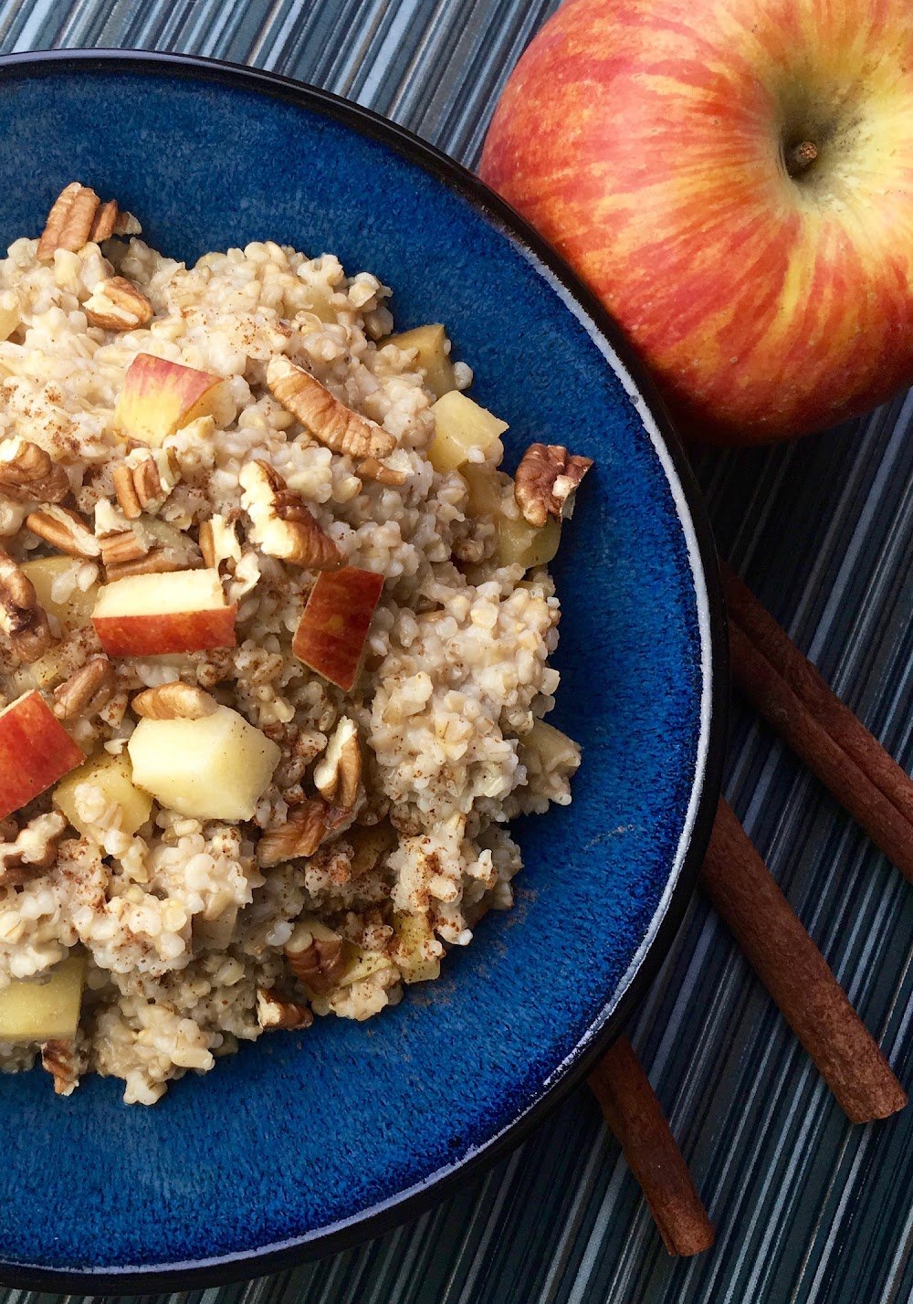 - To serve, allow to cool slightly before spooning into bowls and topping with fresh chopped apples, pecans, and some real maple syrup, if desired.