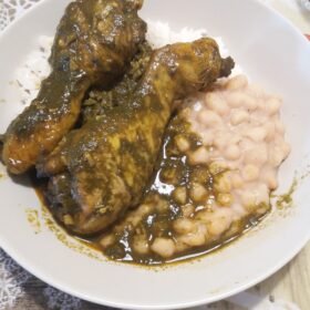 - Serve the seco de pollo hot over rice and beans.