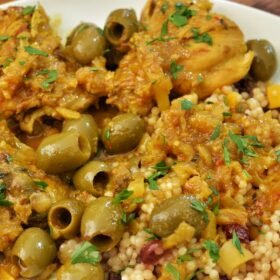 - Serve the Moroccan Chicken with Olives and Preserved Lemon hot, garnished with additional cilantro and parsley, and with lemon wedges on the side. Enjoy!