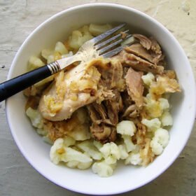 - Serve the preserved lemon and fennel slow chicken with cauliflower hot, garnished with fresh parsley.