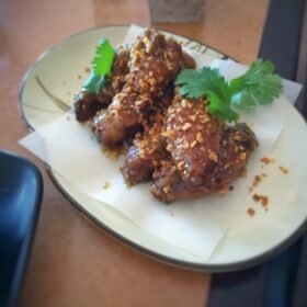 Thai caramel chicken wings with crispy garlic