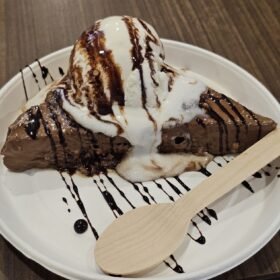 - Place a Chocolate Milky Bar on a serving plate and top it with a scoop of vanilla ice cream.
