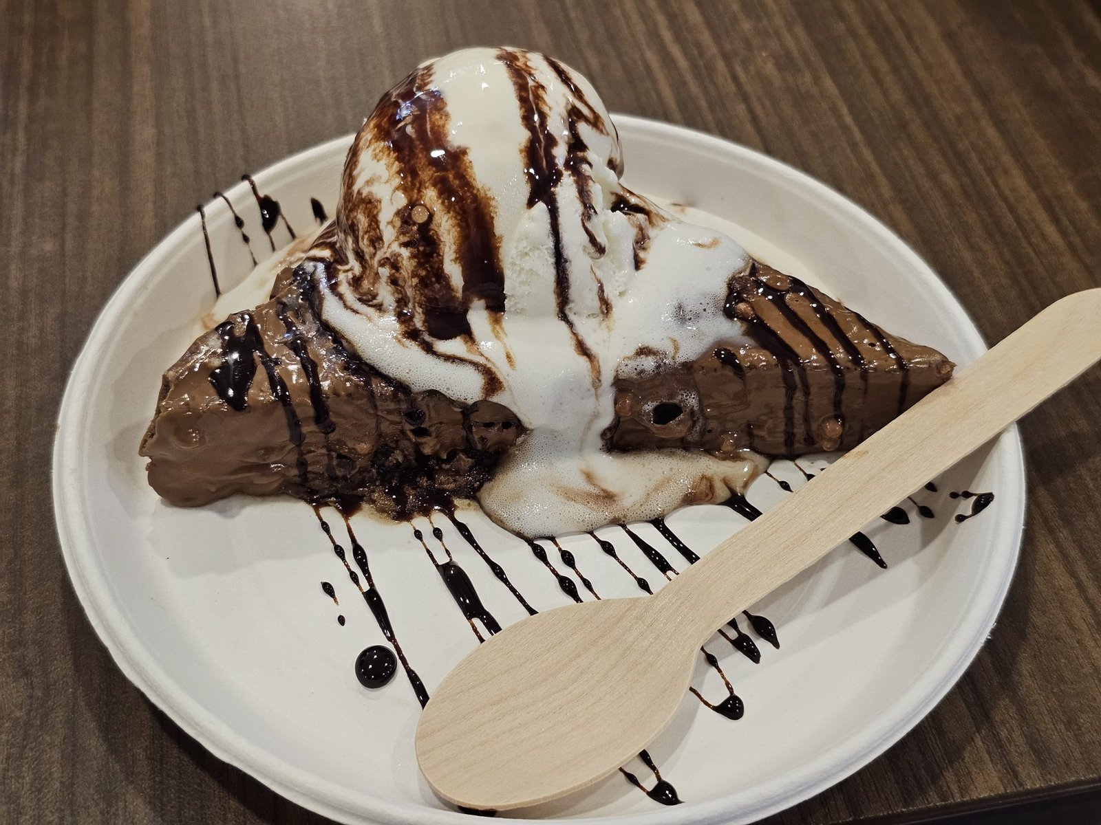 Chocolate Milky Bar topped with vanilla ice cream and drizzled with chocolate syrup