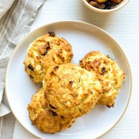 - Using 2 spoons or an ice-cream scoop, scoop the mixture onto the prepared baking sheet. The mixture makes 8 scones.