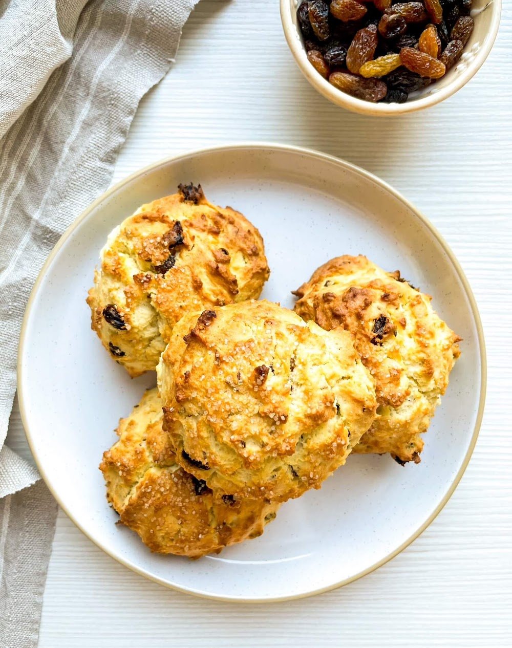 - Add the raisins, caraway seeds, and buttermilk to the scone dough and mix just until combined.