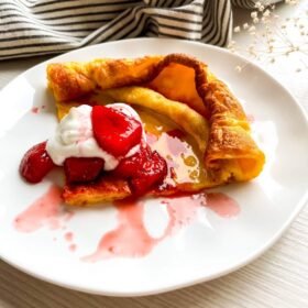 - Remove from the oven and top with the roasted strawberries and extra honey, if desired. Enjoy!