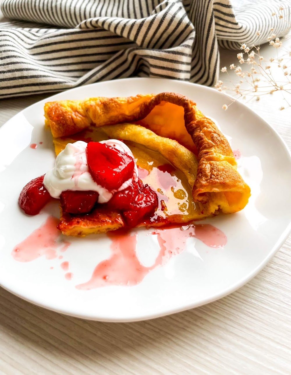- Swirl the butter around until it melts. Pour in the Dutch baby batter. Transfer skillet to the oven and bake until deeply golden and puffy, approximately 18-20 minutes.