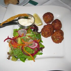 - Serve fritters hot, with dipping sauce on the side and a wedge of lime.