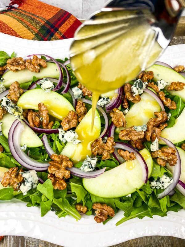 This quick & easy salad features a crunchy combination of crisp apples, celery, arugula, and toasted hazelnuts lightly tossed with a homemade Honey-Dijon vinaigrette.