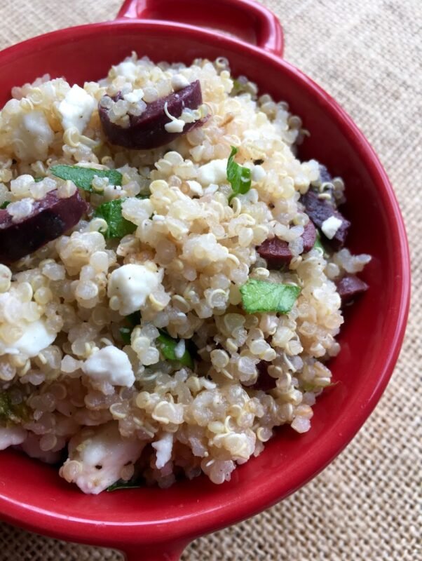 This quick and easy side dish pairs the bold Mediterranean flavors of lime, Feta cheese, Kalamata olives, and fresh parsley against the subtle backdrop of quinoa. Thanks to the naturally salty flavors of the olive brine and Feta cheese, this dish doesn’t need any added sodium to help balance the flavors.