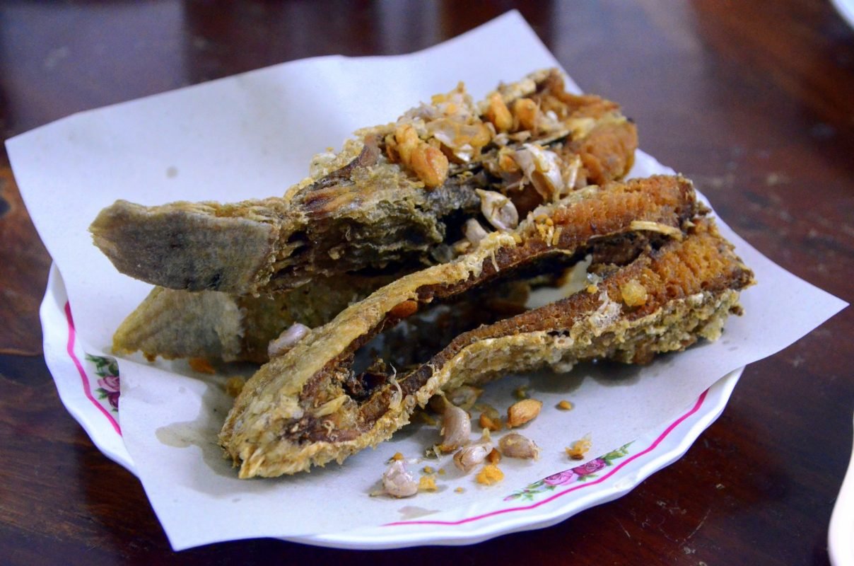 Pla krai thot is a Thai dish that consists of deep-fried minnows or small fish. It is a popular street food in Thailand, known for its crispy texture and savory flavor. The fish are typically seasoned with herbs and spices before being deep-fried to perfection.