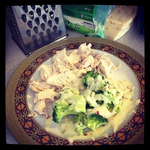 Chicken, broccoli, and pepper jack cheese