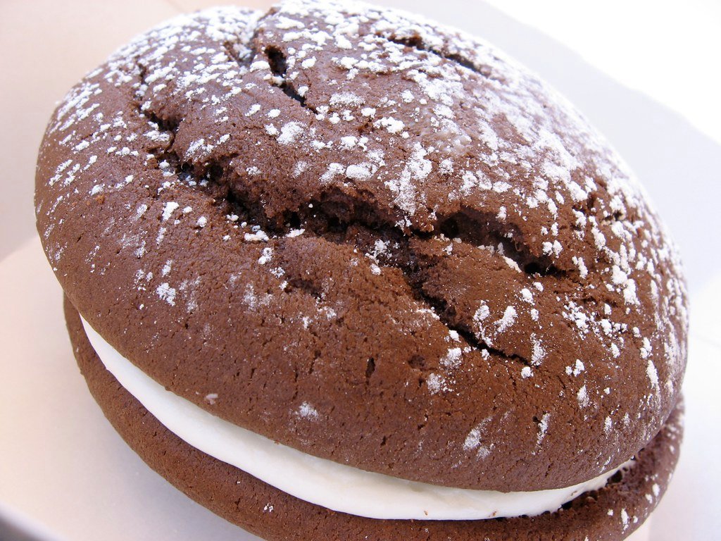 Whoopie Pie is a delightful dessert that consists of two soft, cake-like cookies sandwiched together with a creamy filling. The cookies are often chocolate and the filling is typically a sweet and fluffy mixture, often made with marshmallow fluff or buttercream.