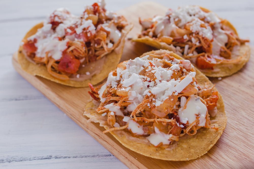 Chicken Tinga Tostadas is a delicious Mexican dish made with shredded chicken cooked in a flavorful tomato and chipotle pepper sauce. The chicken is then served on crispy corn tortillas and topped with various toppings like lettuce, sour cream, cheese, and avocado. It’s a perfect balance of spicy, smoky, and savory flavors.
