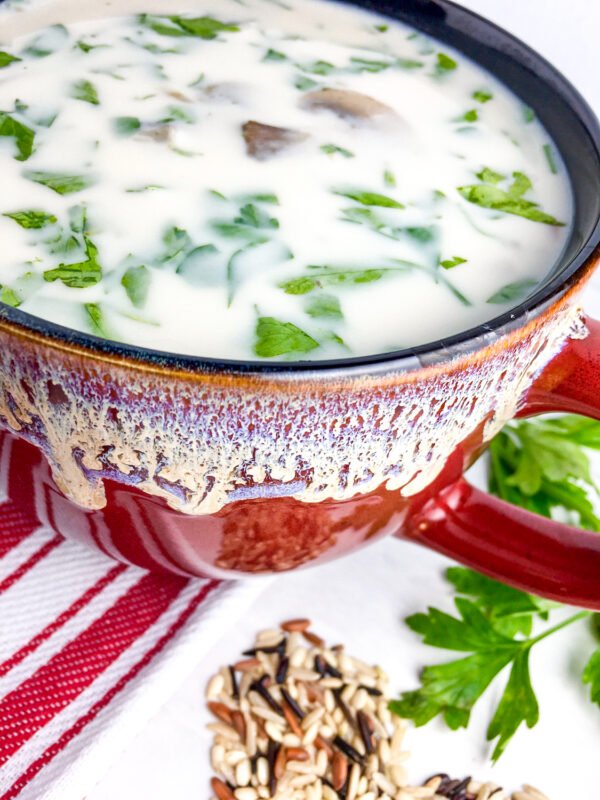 This satisfying, earthy soup is so warm and comforting. The wild rice is filling, while the finely minced and chopped vegetables give the soup consistent flavor throughout. What’s more, its “creaminess” comes from pureed cannellini beans and coconut milk, rather than dairy products.
