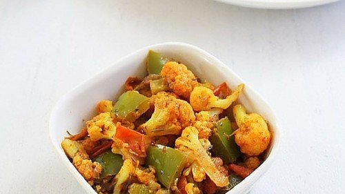 Phul Gobi with Peppers is a delicious Indian dish consisting of cauliflower and bell peppers cooked together with a blend of aromatic spices.
