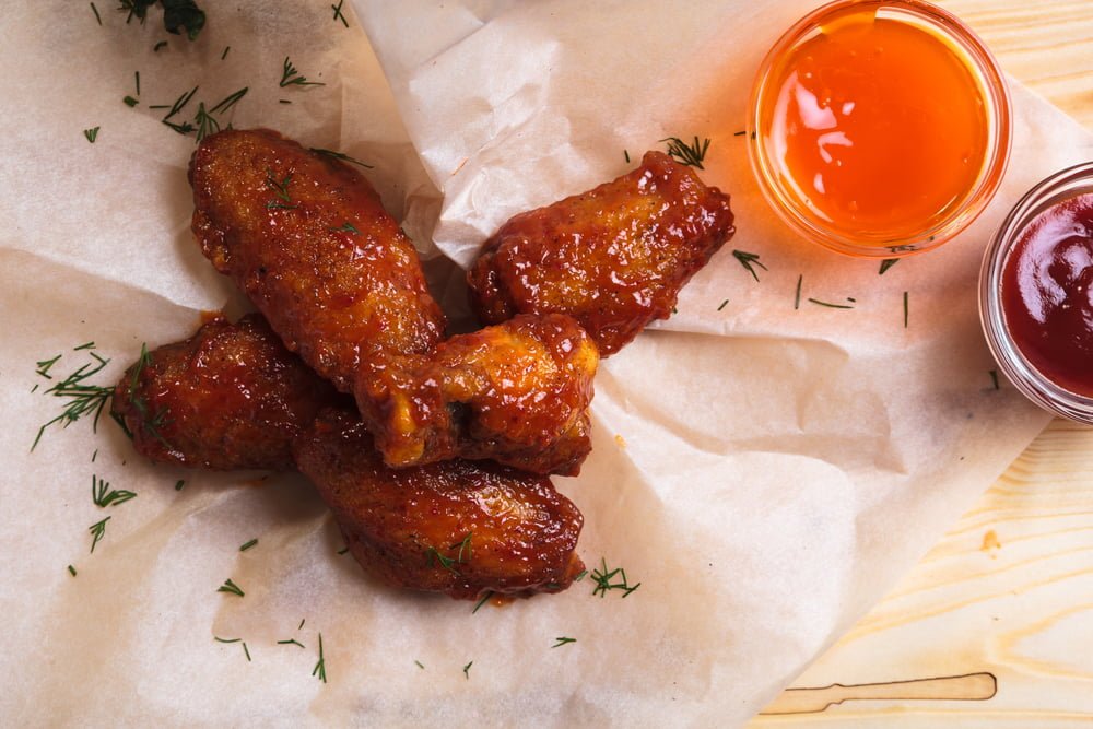 Sweet and spicy chicken wings is a delicious dish where crispy chicken wings are coated in a combination of sweet and spicy flavors. Typically, the wings are seasoned with a mixture of honey, soy sauce, chili sauce, garlic, and other spices to create a sticky and flavorful coating. It's a popular appetizer or snack.