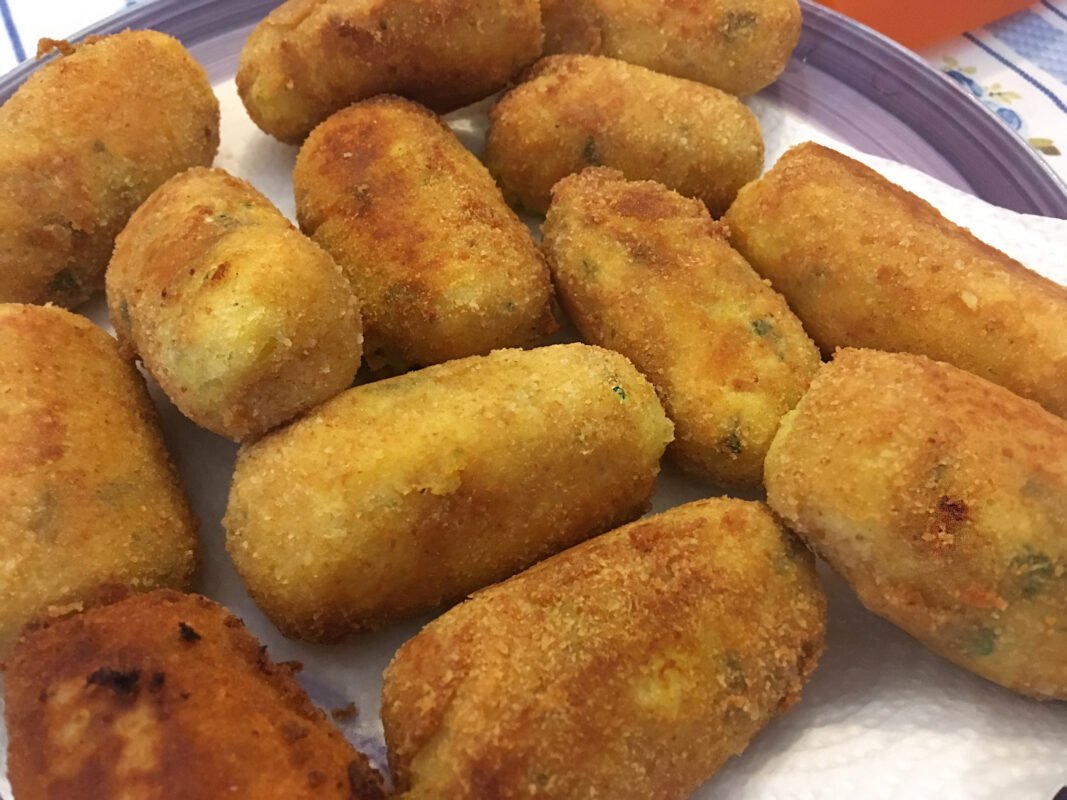 Crocchè, also known as arancini in some regions, are a popular Italian street food made of breaded and deep-fried balls or patties of mashed potatoes, often mixed with cheese, herbs, and sometimes meat or vegetables. They are crispy on the outside and soft and creamy on the inside. They make a delicious snack or appetizer!