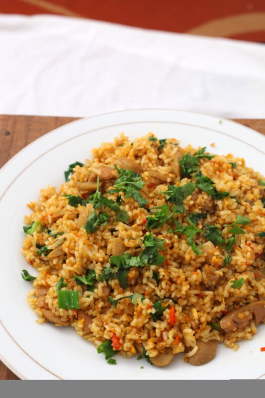 Nasi Goreng-Indonesian Fried Rice is a delightful combination of fried rice, mixed with various ingredients such as chicken, shrimp, vegetables, eggs, and a medley of spices and sauces. The name "Nasi Goreng" actually translates to "fried rice" in Indonesian.