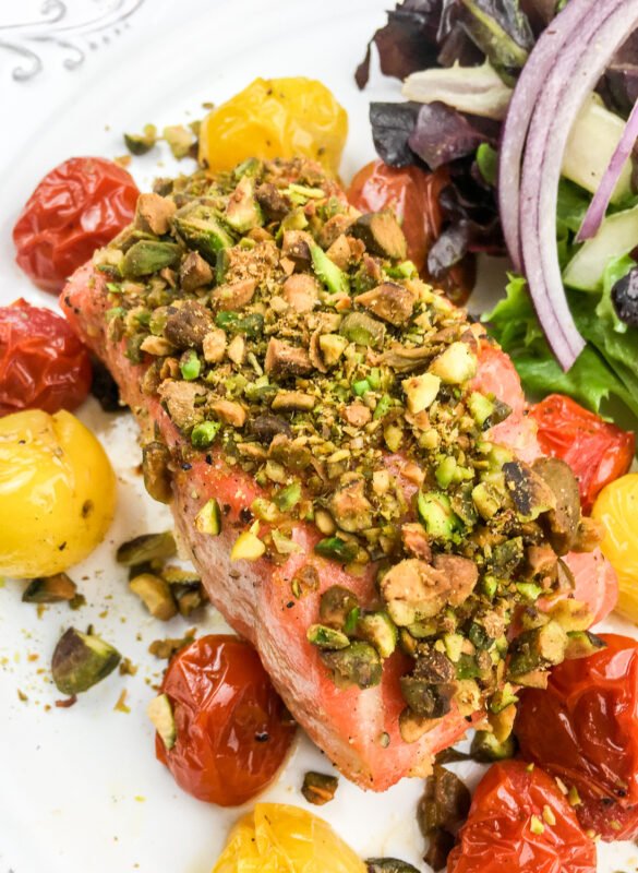 Pistachio-Crusted Salmon with Blistered Cherry Tomatoes