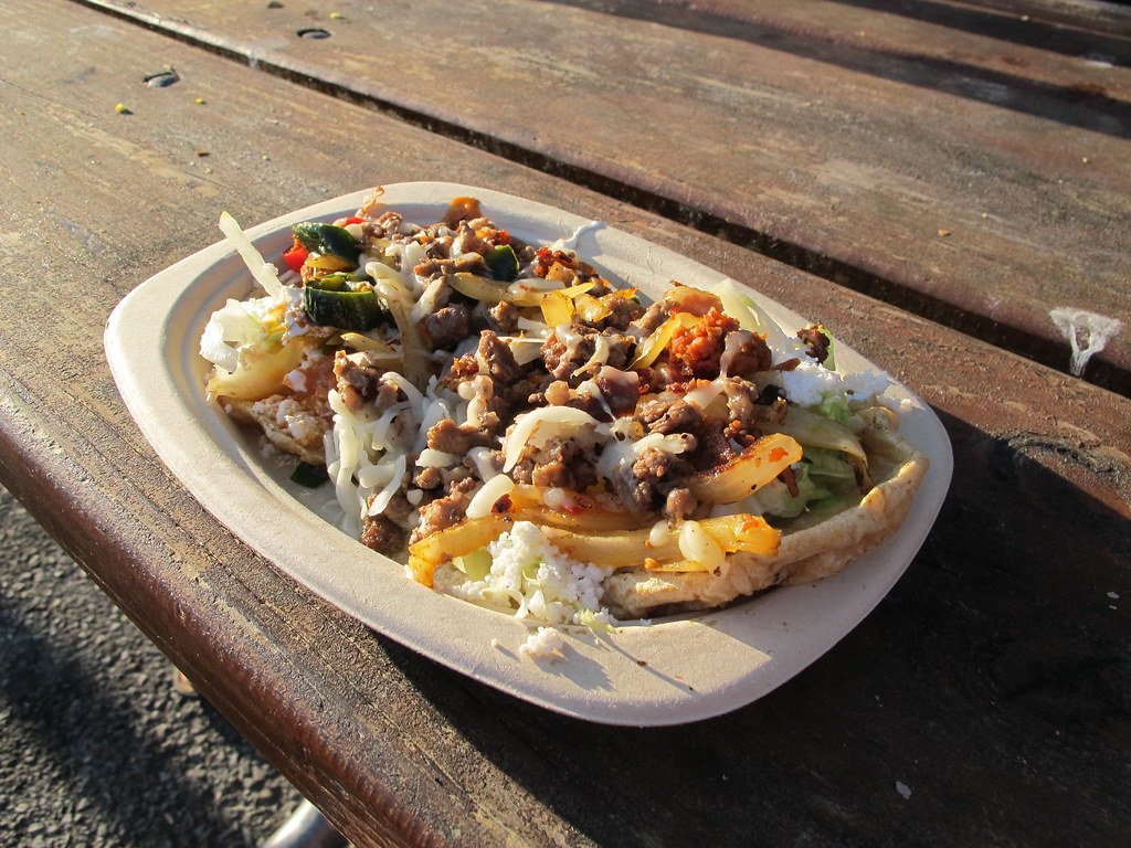 Carnitas sopes is a delicious Mexican dish made with corn masa dough formed into a thick base, similar to a small, thick tortilla. The base is then fried to create a crispy outer layer and topped with shredded pork carnitas, along with various toppings like salsa, cheese, lettuce, and sour cream.