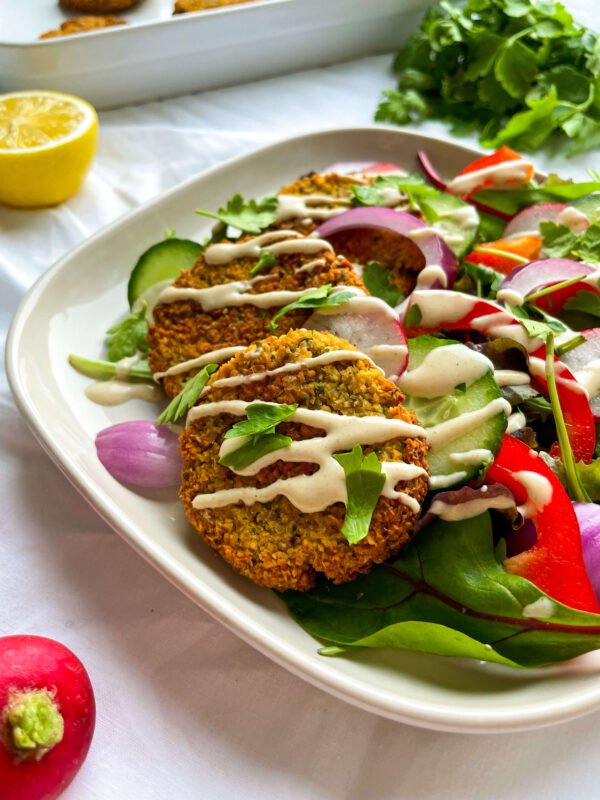 Crispy Baked Falafel with Lemony Tahini Sauce