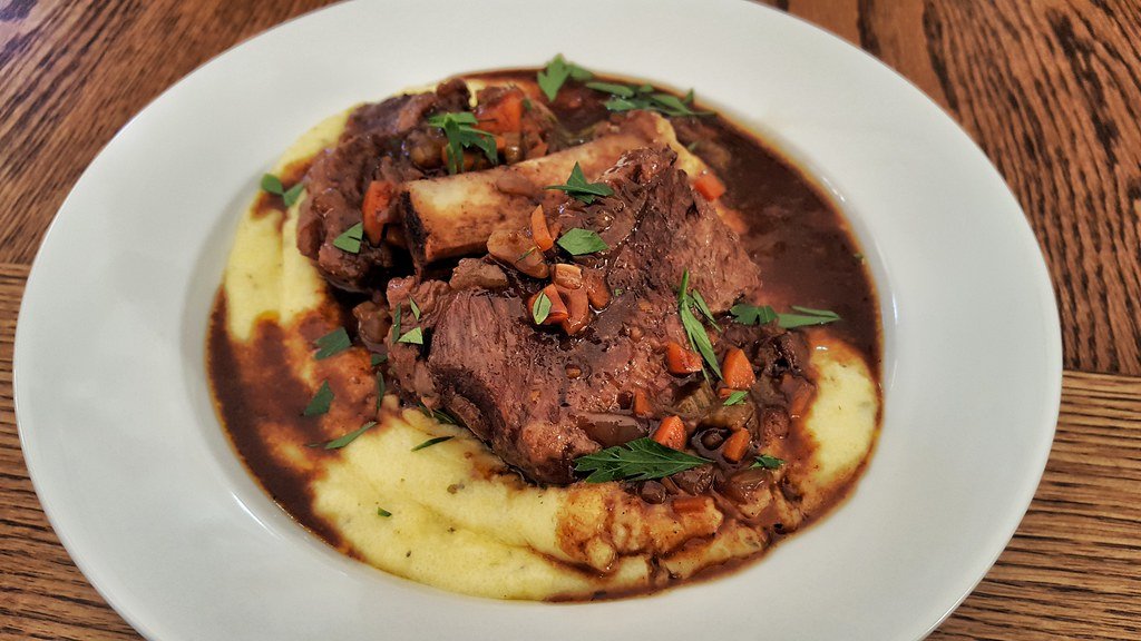 Beef short ribs over goat cheese polenta is a delicious dish where tender, slow-cooked beef short ribs are served on a bed of creamy goat cheese polenta. The rich, savory flavor of the beef pairs perfectly with the tangy creaminess of the goat cheese polenta.