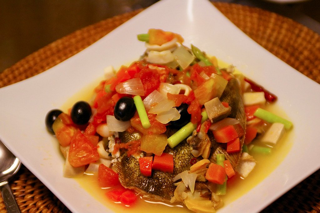 Acqua pazza is an Italian dish that translates to “crazy water.” It is a flavorful seafood recipe that typically consists of fish cooked in a light and aromatic broth made with tomatoes, garlic, olive oil, herbs, and sometimes a splash of white wine.