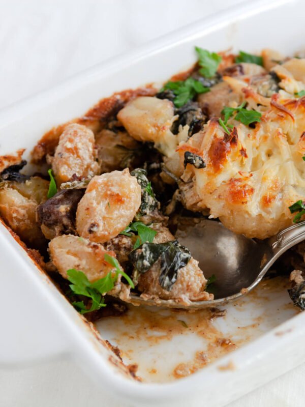 Baked Gnocchi with Italian Sausage and Baby Power Greens