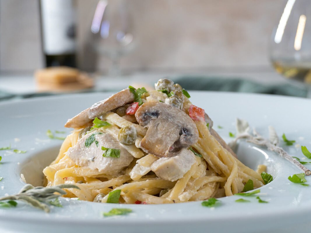 One Pot Turkey Tetrazzini with Mushrooms, Peas, and Sage Cream Sauce