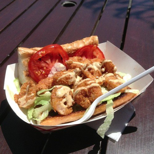 Shrimp Po’ Boy is a traditional sandwich from Louisiana, typically consisting of fried shrimp on a French baguette or hoagie roll, topped with lettuce, tomatoes, pickles, and a spicy remoulade sauce. It’s a delicious and satisfying dish with a mix of crispy shrimp and flavorful toppings.