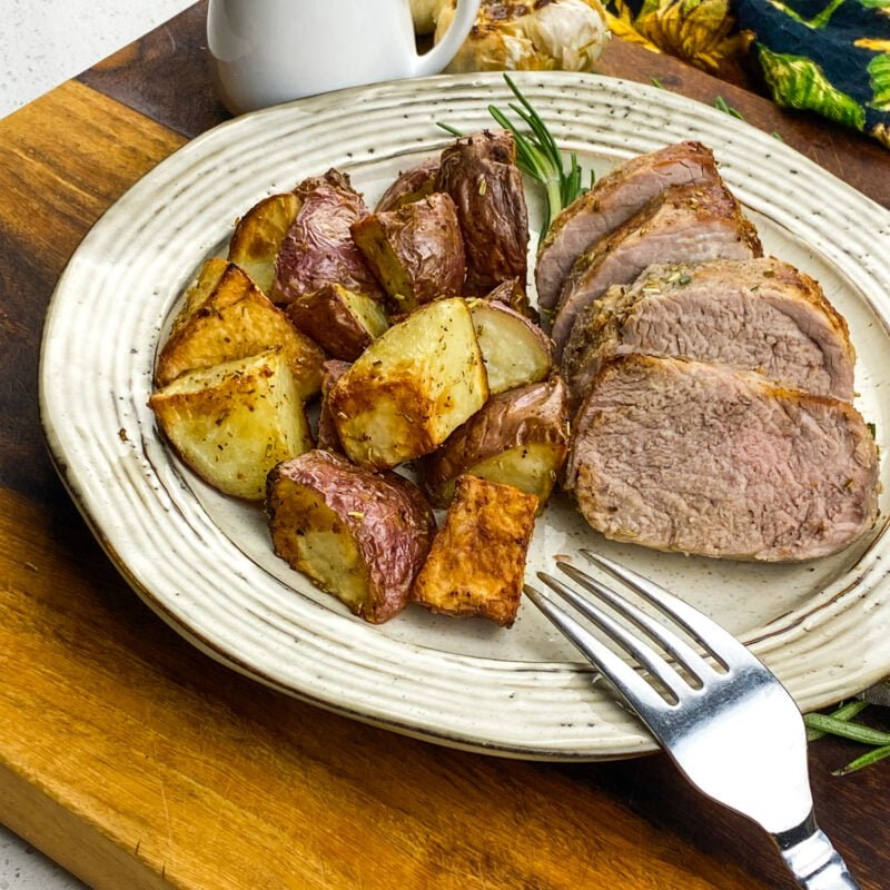 Air Fryer Pork Tenderloin and Red Potatoes with Creamy Roasted Garlic Sauce is a delightful dish that combines tender pork tenderloin and crispy red potatoes with a creamy and flavorful roasted garlic sauce.