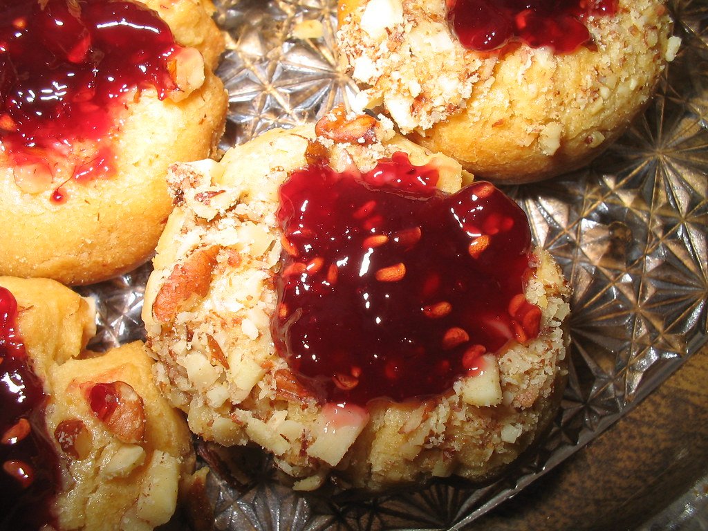 Raspberry-Hazelnut Thumbprint Cookies are a type of cookie that combines the flavors of raspberry and hazelnut. The cookies are made with a buttery dough that is rolled into balls, then pressed with a thumb to create an indentation in the center. The indentation is then filled with raspberry jam and chopped hazelnuts.