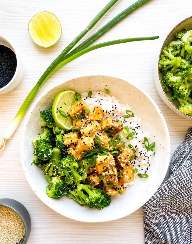 Sesame Tofu with Broccoli and Scallions