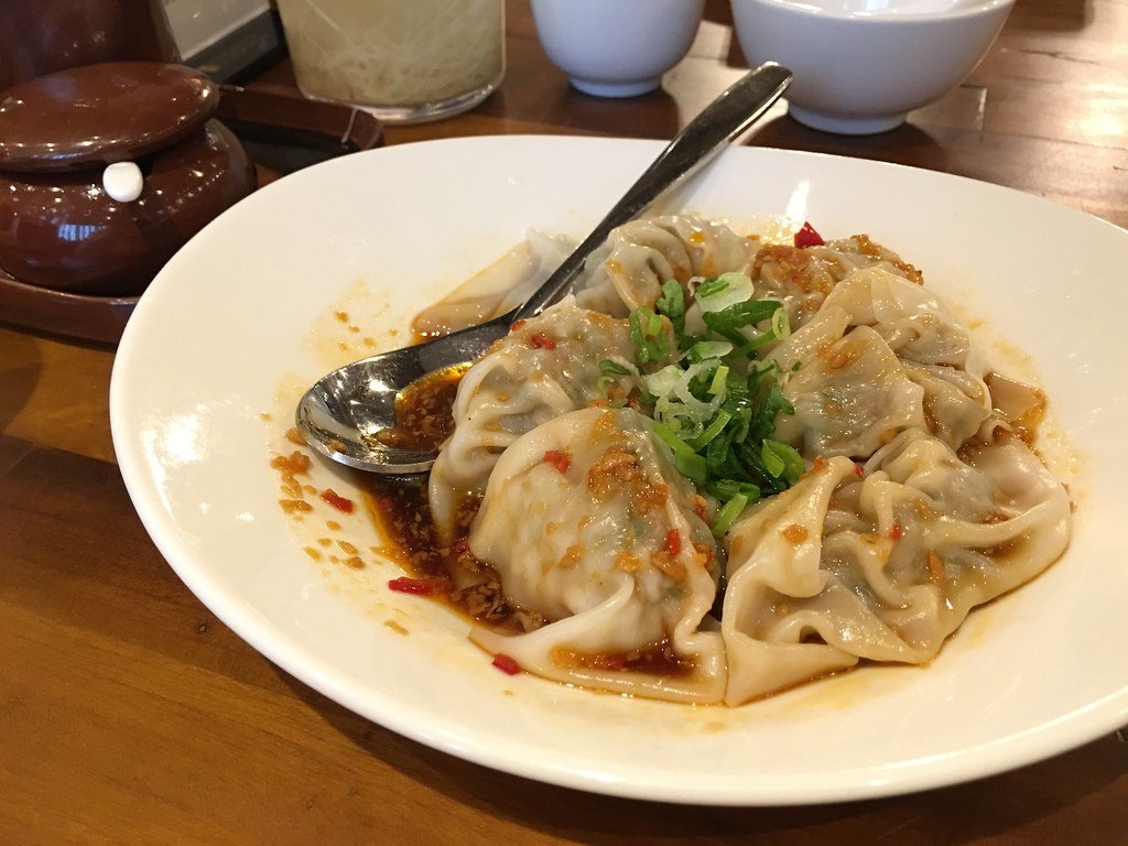 Pork dumplings with hot chili vinaigrette