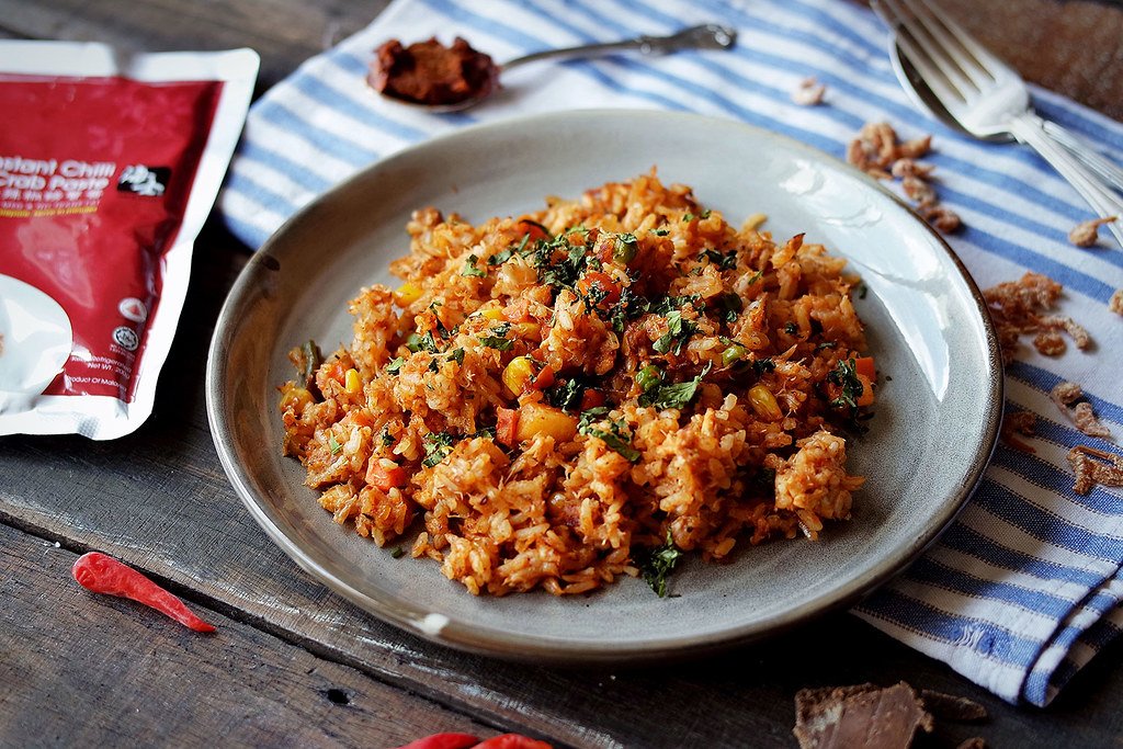Chilli Crab Fried Rice is a delicious and popular dish that combines the flavors of spicy chilli crab and fragrant fried rice. It typically consists of stir-fried rice that is seasoned with a tangy and spicy chilli crab sauce, along with ingredients like diced crab meat, vegetables, and aromatic spices.