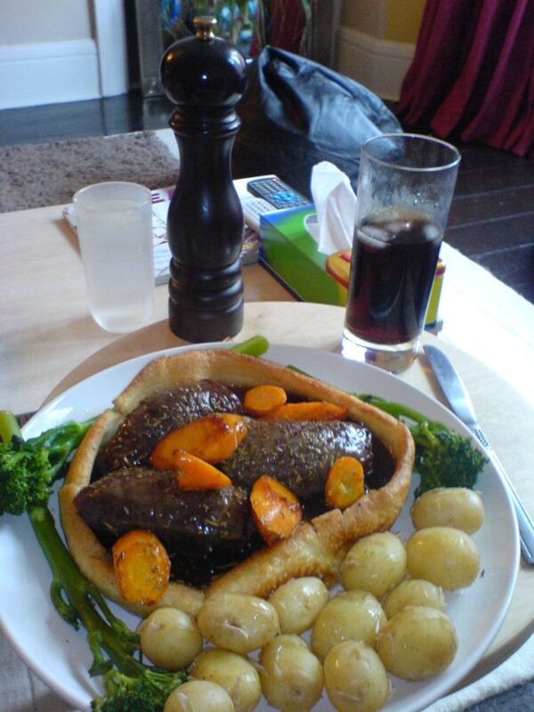 Beef olives is a dish made by rolling thinly sliced beef around a filling, typically a mixture of breadcrumbs, onion, and herbs, before cooking them in a flavorful sauce.