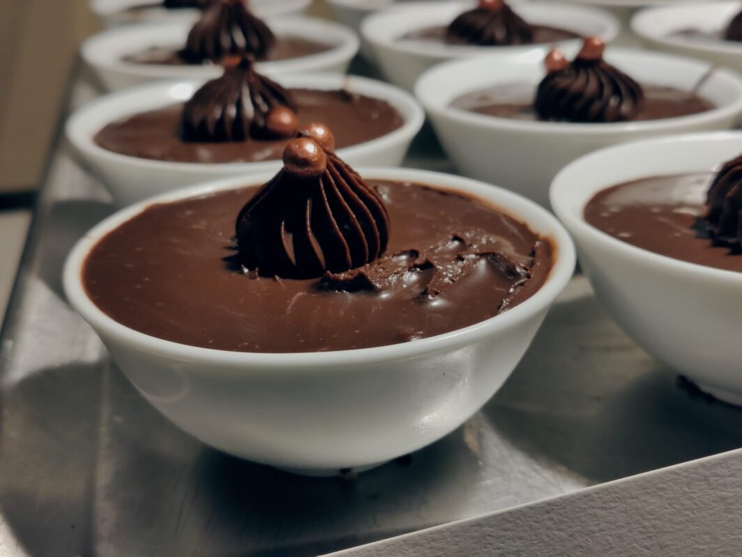 Dark chocolate mousse is a dessert made from rich, dark chocolate, whipped cream, and sometimes eggs. It has a creamy and light texture, making it a popular choice for chocolate lovers.